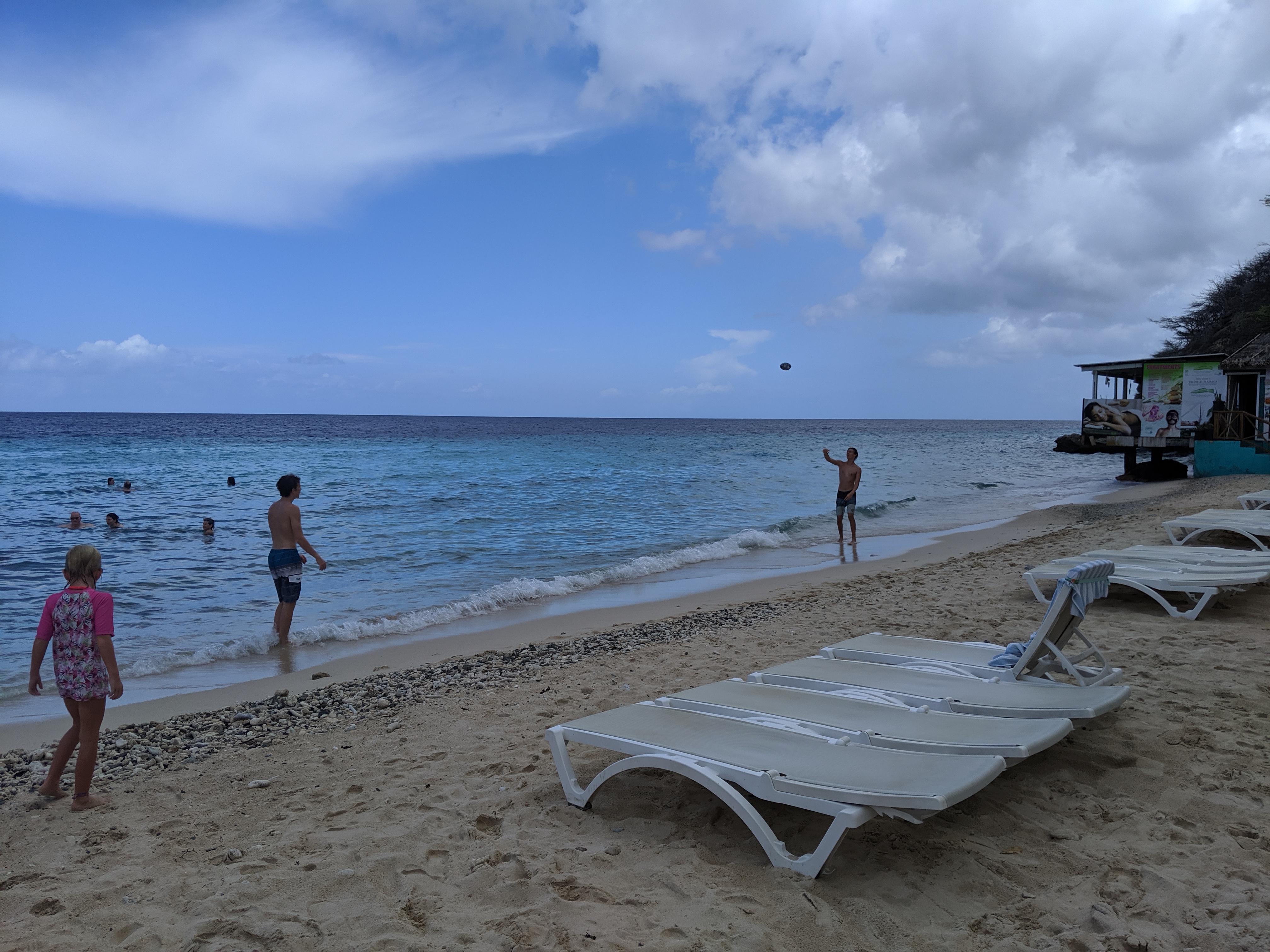 This beach will be a must-visit for us! The boys enjoyed playing football in the sand, the clear water, and the platform. We didn’t check out the restaurant this time, but they have burgers and simple meals as well as tons of drinks. It was a bit pricey, but one day we will spoil the crew! We’re not really into massages, and we don’t know how to scuba dive (yet), but those were offered on the beach as well! If you’re in Curaçao, check out Kokomo Beach.