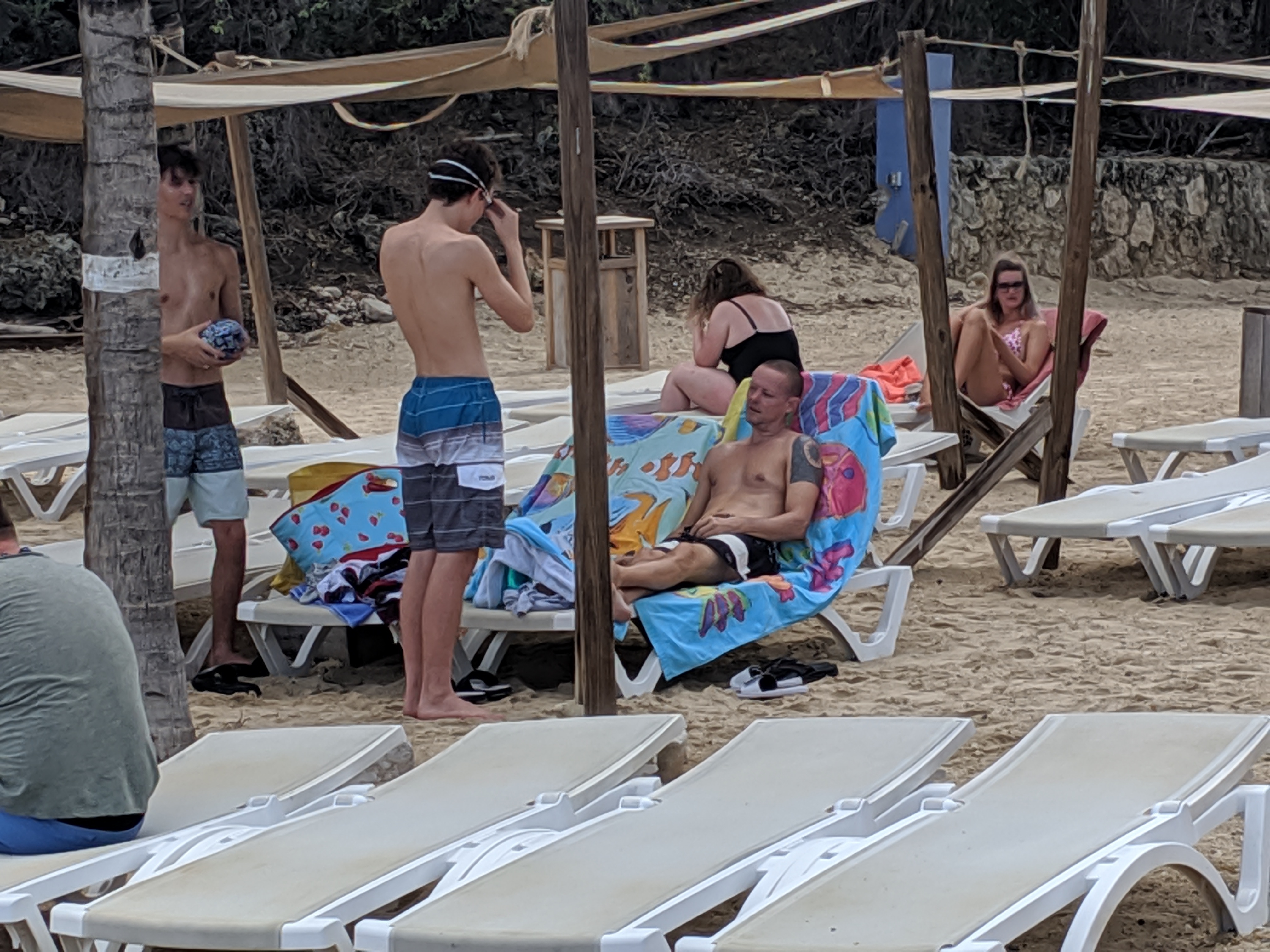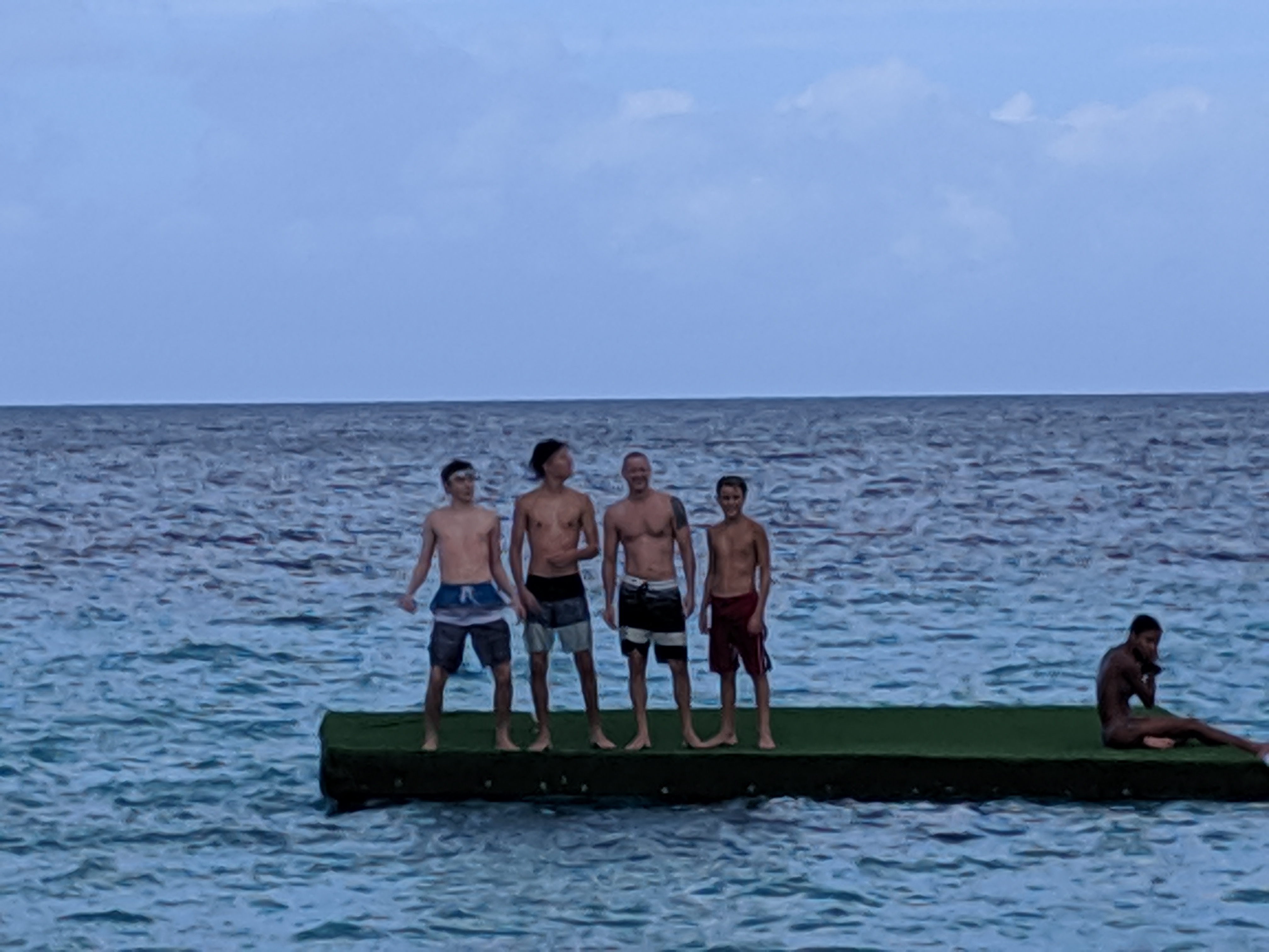 We all swam out to the platform, where we are guessing it was about 8 feet deep. You can see the bottom of the ocean PERFECTLY, even at 8 ft! The boys practiced flipping, throwing a ball around, and timing jumps. While there, we met a lot of other people, and everyone began playing a game together on the platform. Language differences didn’t stop the fun!