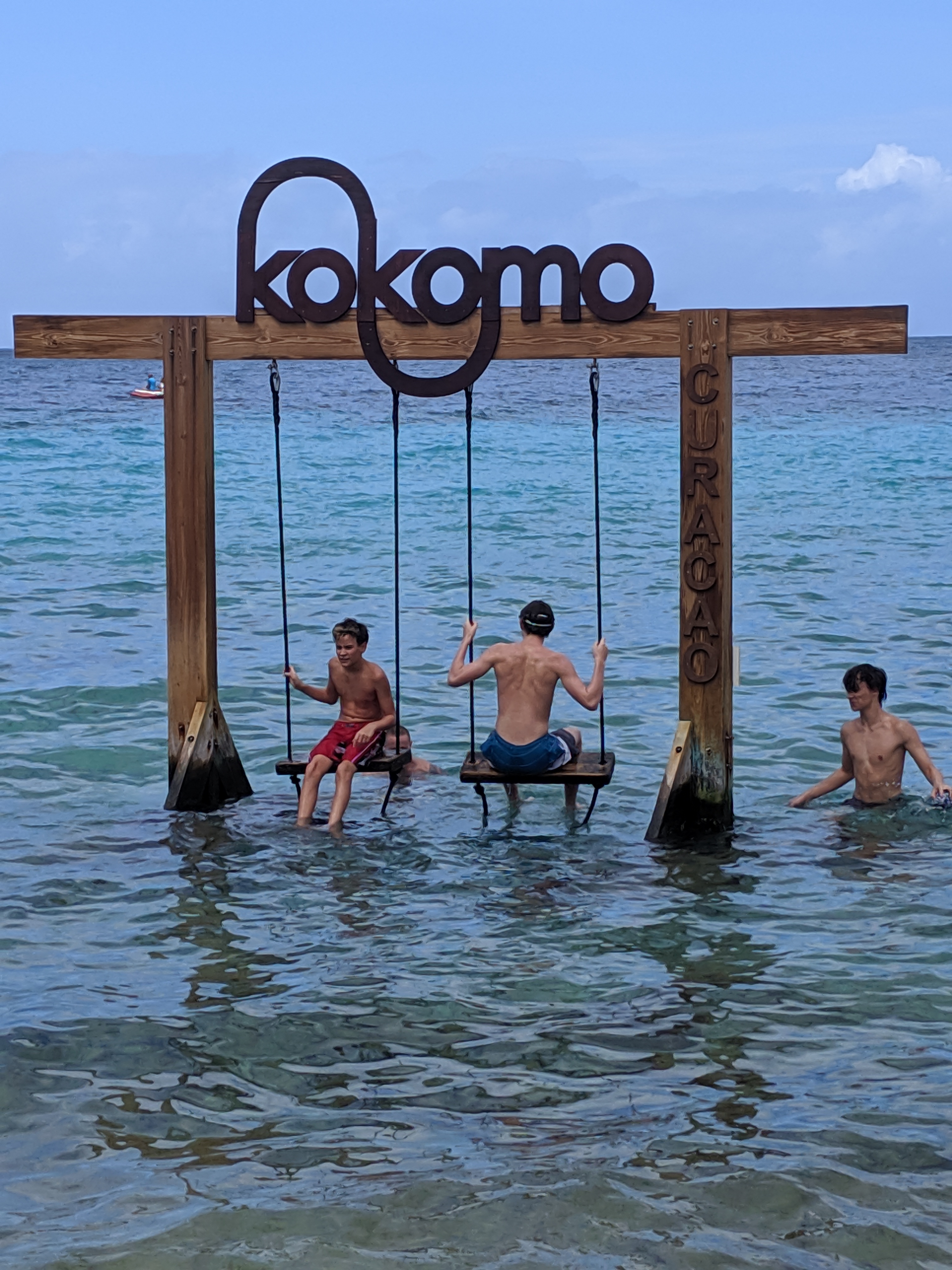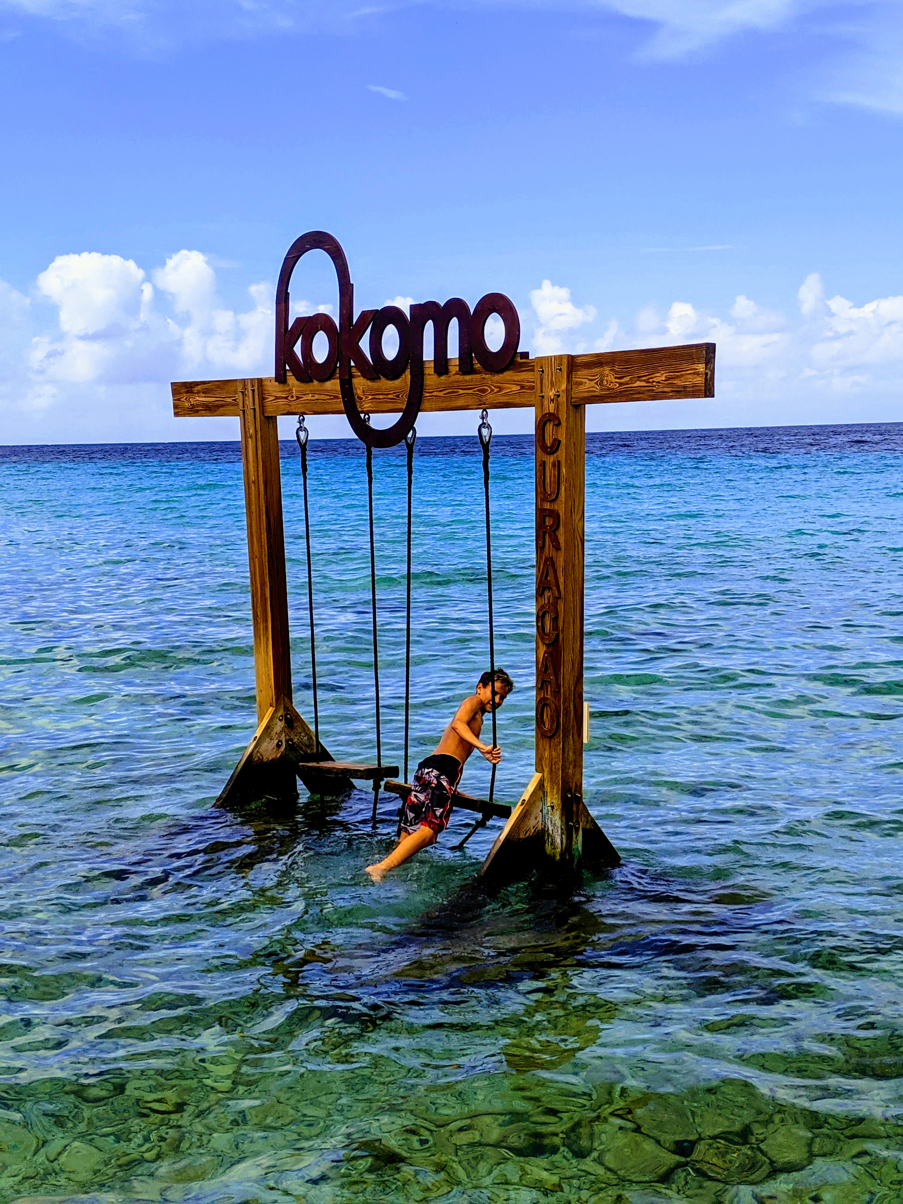 At Kokomo Beach, there are swings over the water. These are mostly a photo opportunity. You aren’t meant to really swing on them. I personally didn’t try to get on one, because I watched Rhys struggle to get on. He got out there and then was trying to pull himself off. He fell over a few times (yes, I laughed), but he finally got up. I’m fairly certain I don’t need that kind of embarrassment in my life, so I just took pics of the kids!