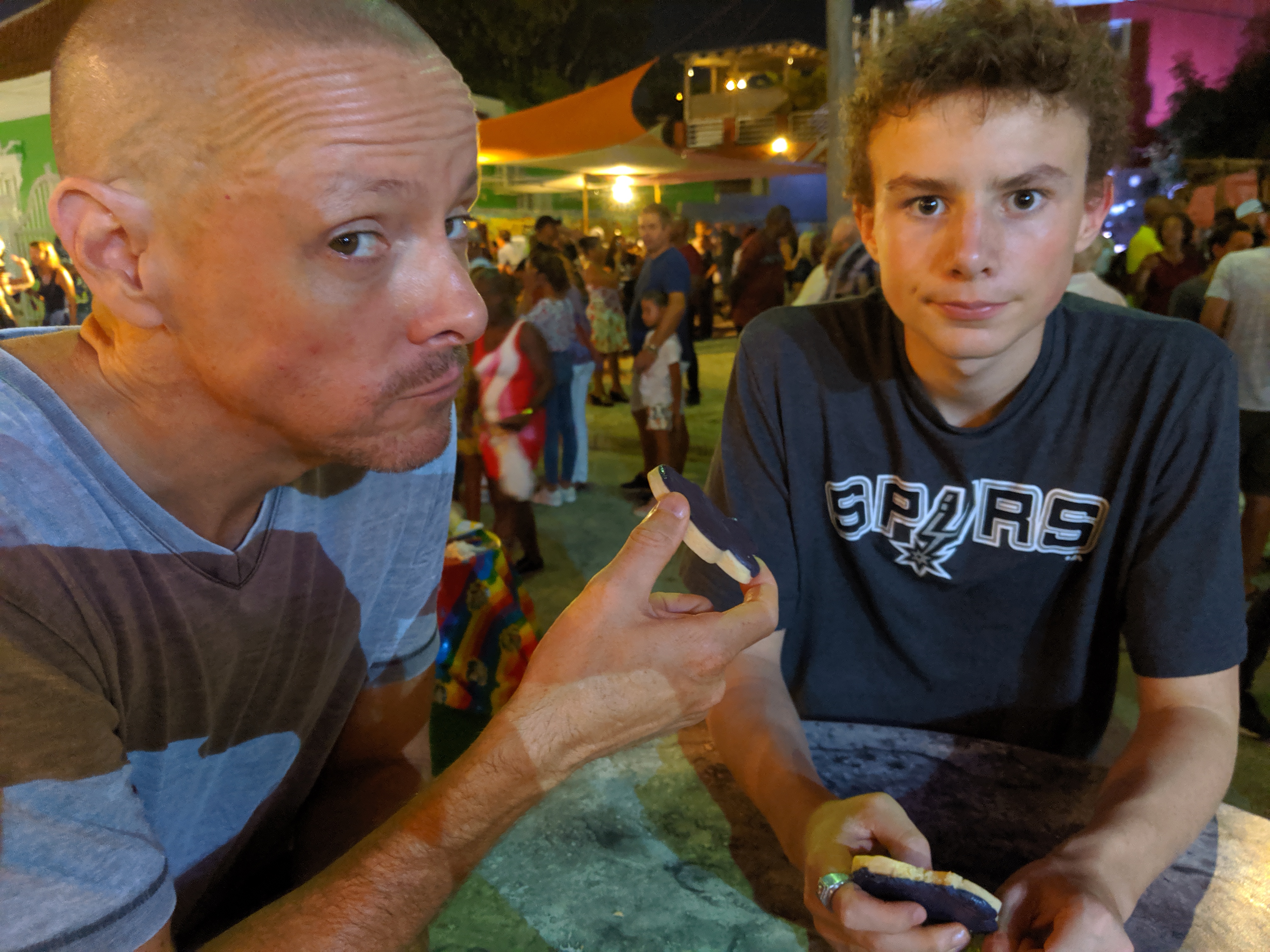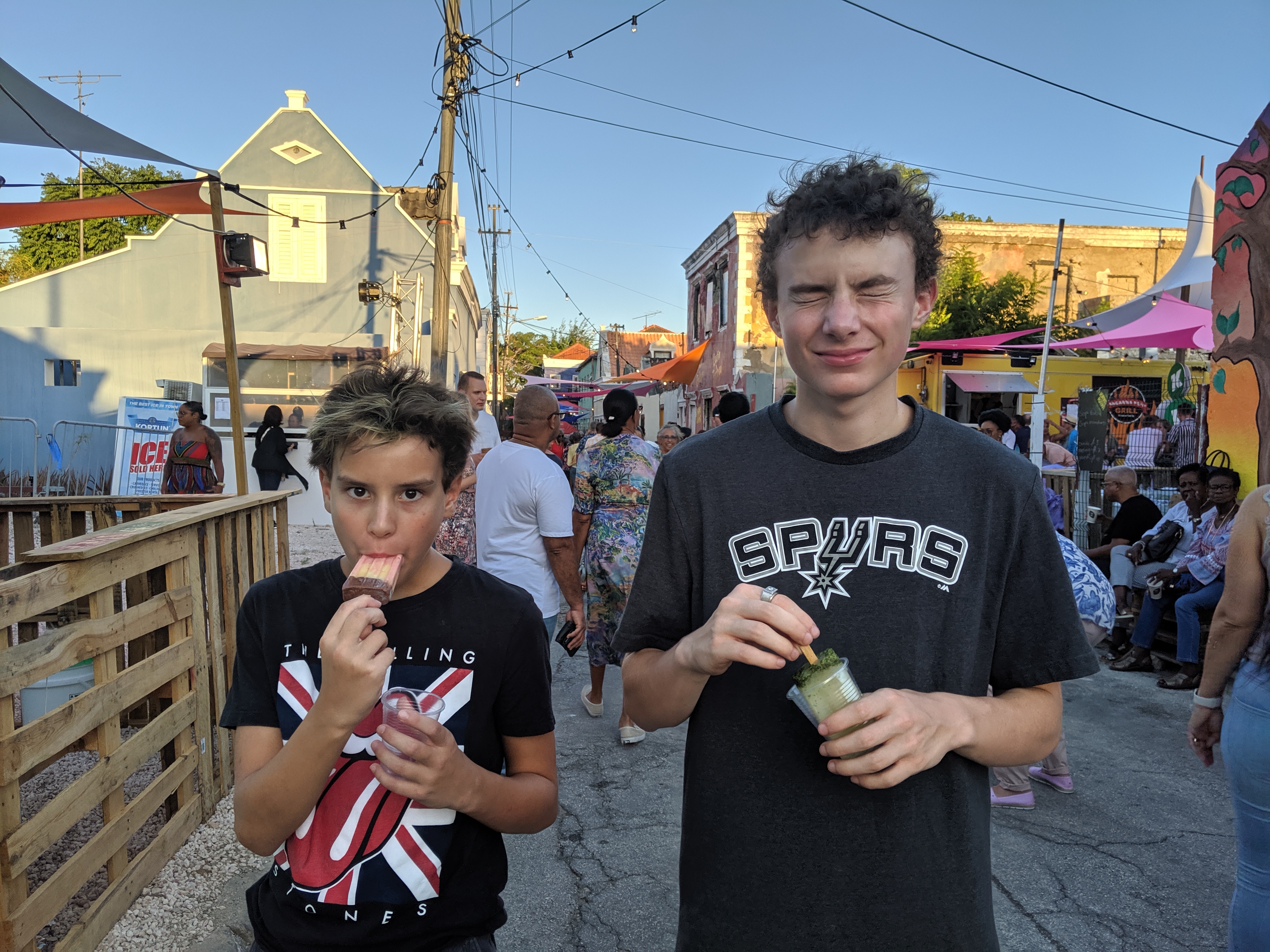 There was so much food! Truthfully, there was probably more food than anything else. It was typical festival food and there were booths with food and drink available throughout the streets. We ate hot dogs, hamburgers, popsicles, teriyaki chicken and rice, and popcorn – oh my! The boys probably consumed their weight in soda, lemonade, and cookies, while Cody and I stuck to mojitos and Amstel Bright.