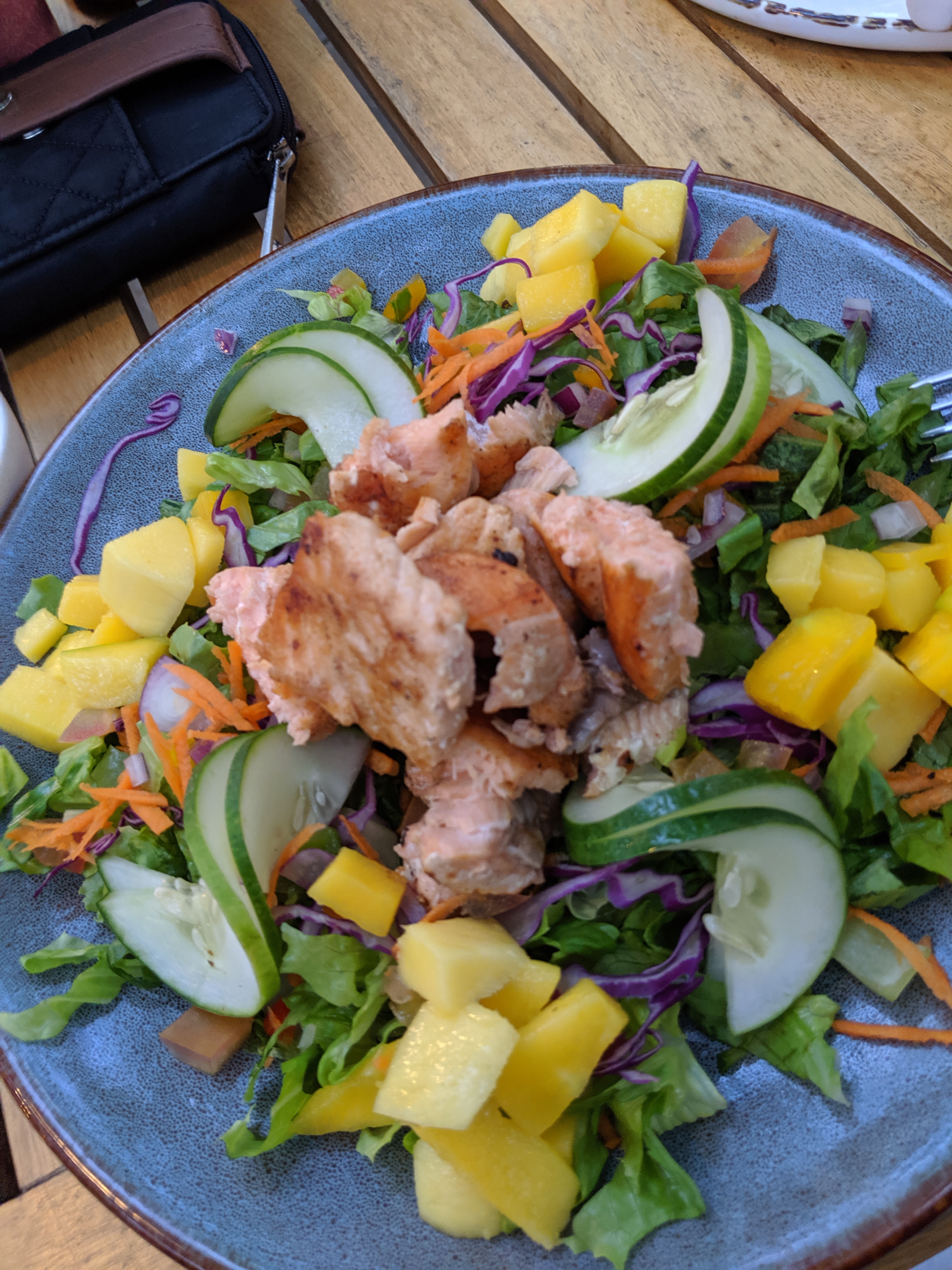 We chose to go to Mistral. We haven’t been to a ton of places in Punda yet, but this one is one of my favorites. We arrived early, around six, in order to get a table, and we were able to sit outside. Everyone was so friendly as we sat and enjoyed the atmosphere. As salmon lovers, my husband and I ordered a salmon salad and salmon filet. Both were yummy! The folkloric dancing was really entertaining and the band got people up and dancing!