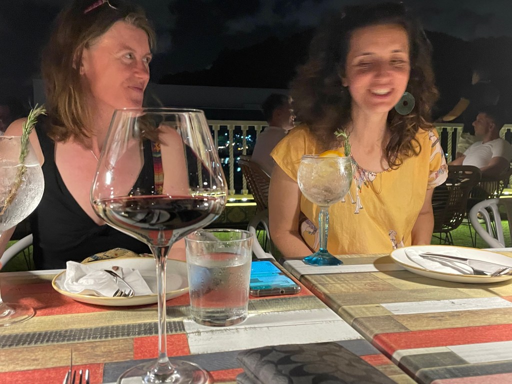 After the ride, we ate in a fancy food court area. It was lovely. We sat upstairs on the covered rooftop, enjoyed delicious food and drinks while grooving to a DJ.